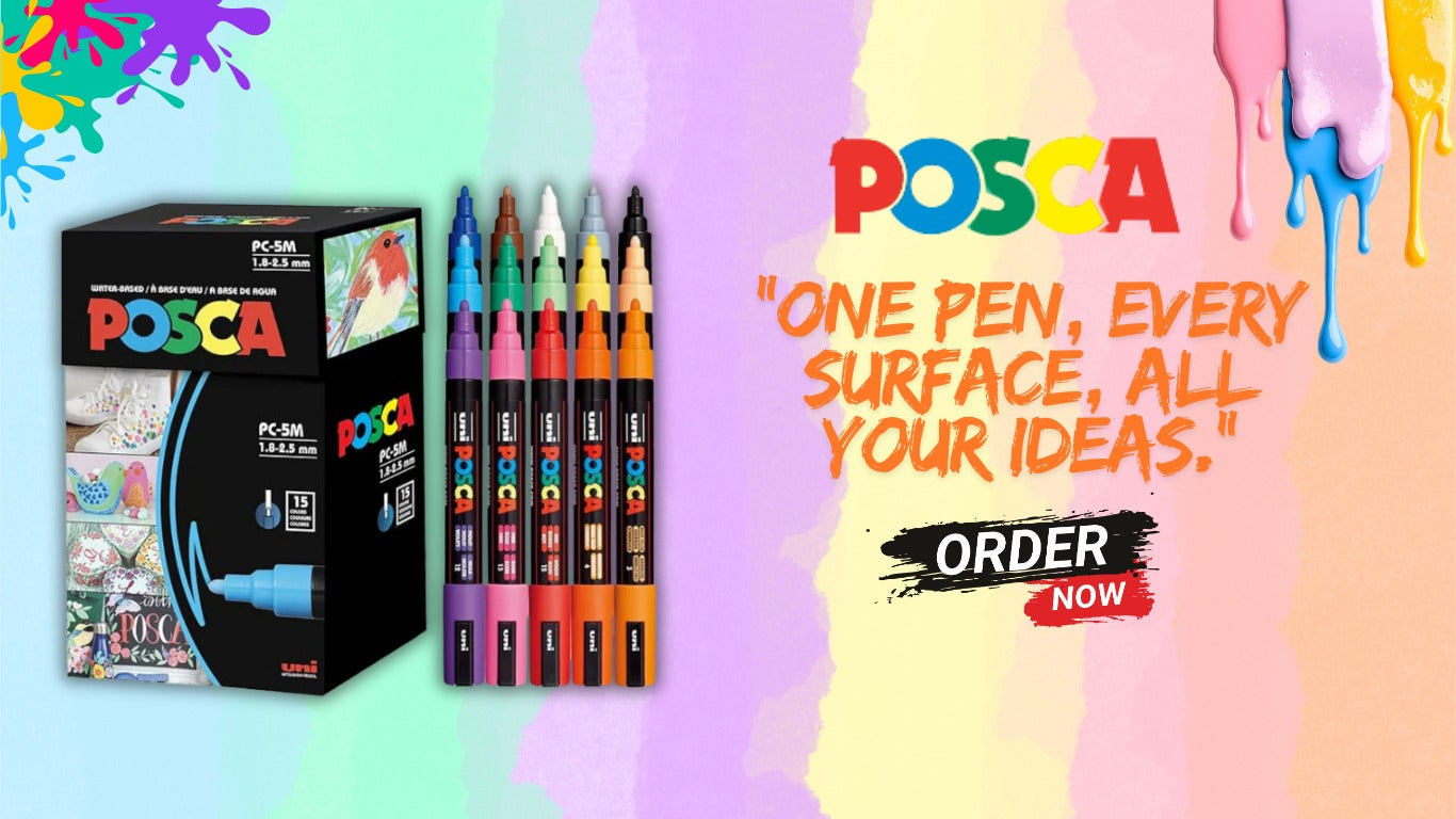Posca Mitsubishi Pencil Water based Pen, Medium, Round Tip 15 color set