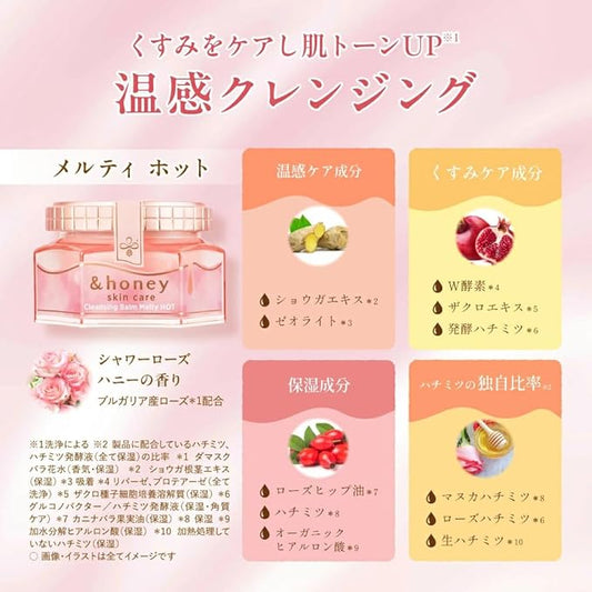 & Honey Melty Cleansing Balm, Hot, 3.2 oz (90 g), Skin Tone Enhancement Warming Cleansing, No Need for Face Washing, Eyelashes OK