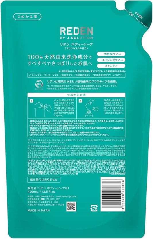 Reden Body Soap, Refill, 13.5 fl oz (400 ml), Marine Musk Scent