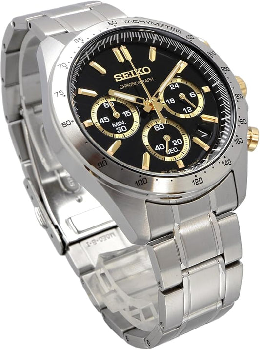 Seiko SND367P1 Chronograph Wristwatch, Genuine Leather Strap Set, Domestic Genuine Distribution, Black, 1 piece