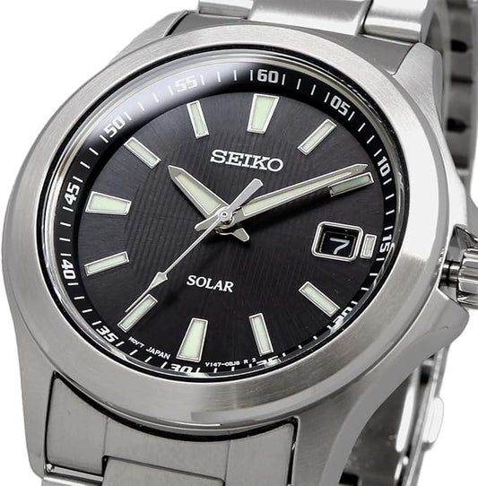 Seiko SBPN067 Solar Quartz Men's Wristwatch, Silver, Black, Bracelet Type