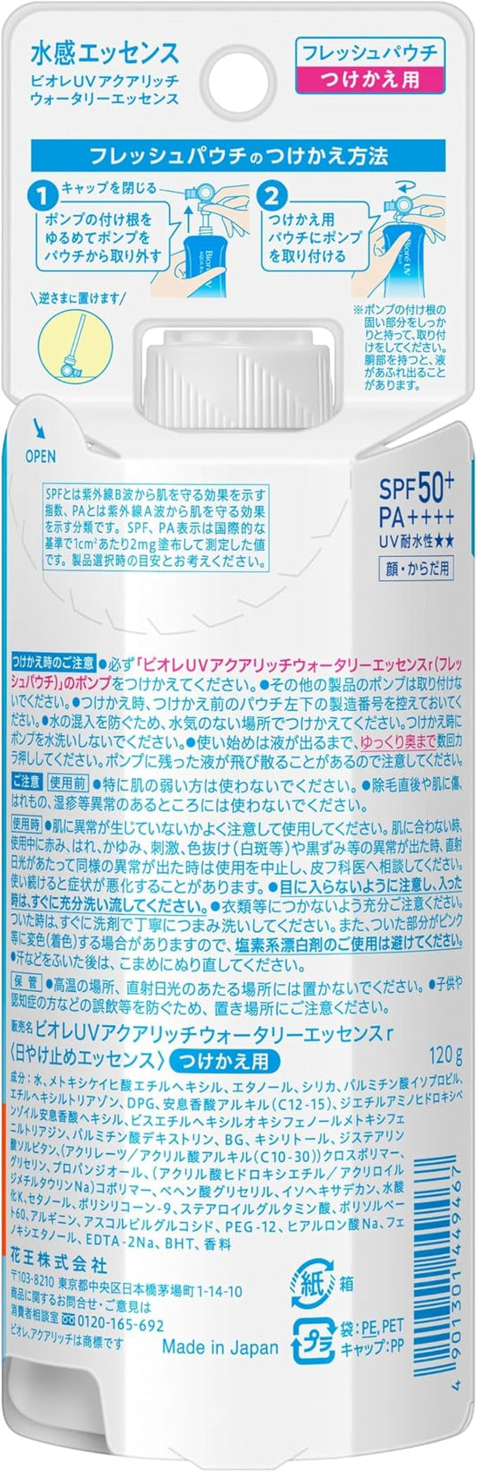 Biore SPF 50 UV Aquarich Watery Essence Fresh Pouch, 4.2 oz (120 g), Replacement Sunscreen