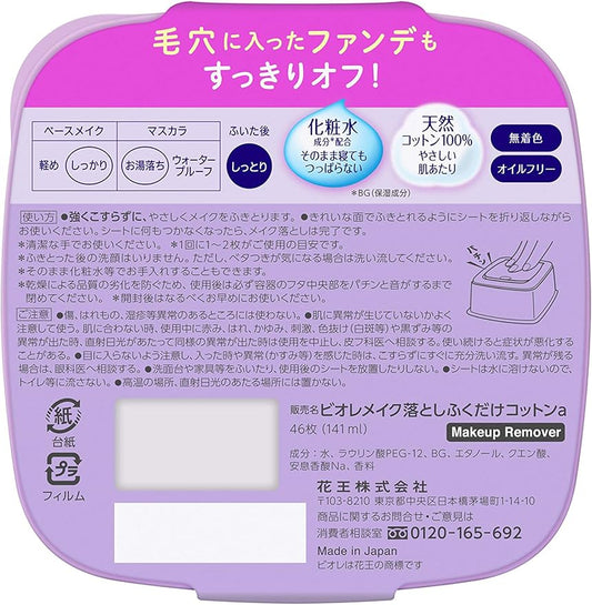 Bioré Makeup Remover Cotton Wipe-Off, 46 Sheets