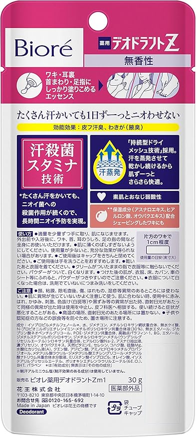 Biore Deodorant Z Essence Unscented, 1.2 oz (30 g)