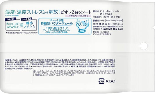 Biore Zero Sheet, Pretty Floral Scent, 20 Sheets, Antiperspirant Sheet, Deodorant Sheet