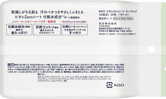 Biore Zero Sheet, Lotion Ingredients, Refreshing Soap Scent, 20 Sheets, Antiperspirant Sheet, Deodorant Sheet