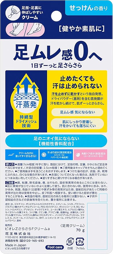 Biore Z Smooth Foot Cream, Soap Scent, 2.5 oz (70 g), For 0 Feet Feel, Smooth Feet for 1 Day, 2.5 oz (70 g) x 1)