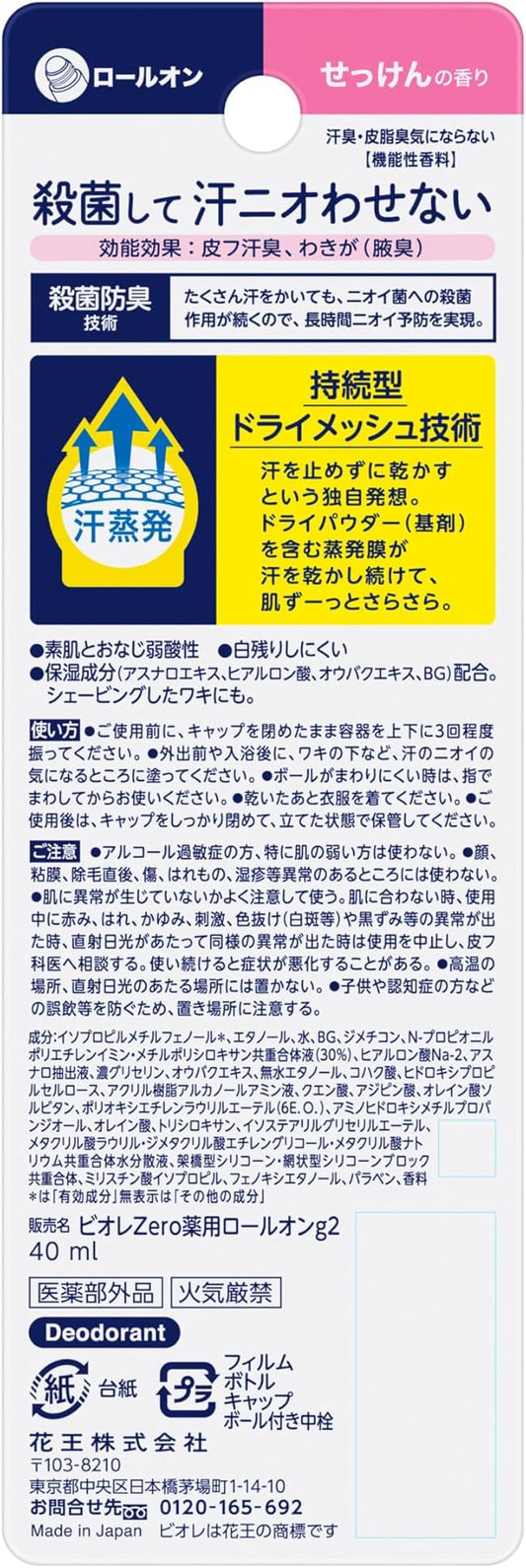 Biore Zero Medicated Deodorant Roll On Soap Scent Antiperspirant