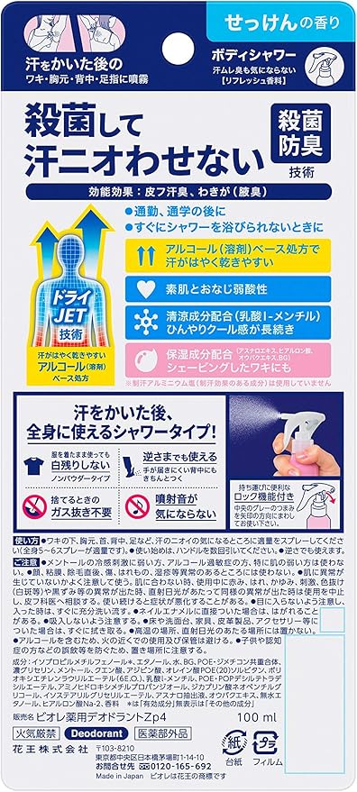 Biore Z Medicated Body Shower, Soap Scent, 3.4 fl oz (100 ml) (Quasi-drug) (Shower Directly on Sweat Skin, Sterilized, Won't Show Sweat