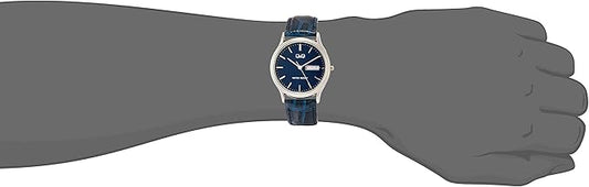 Citizen Q&Q A204-302 Men's Wristwatch, Analog Waterproof, Date, Week, Leather Strap, Navy, Dial Color - Blue, Watch with date and day display