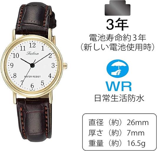 Citizen Q&Q Q997-104 Women's Watch, Analog Waterproof, Leather Strap, White, white/brown