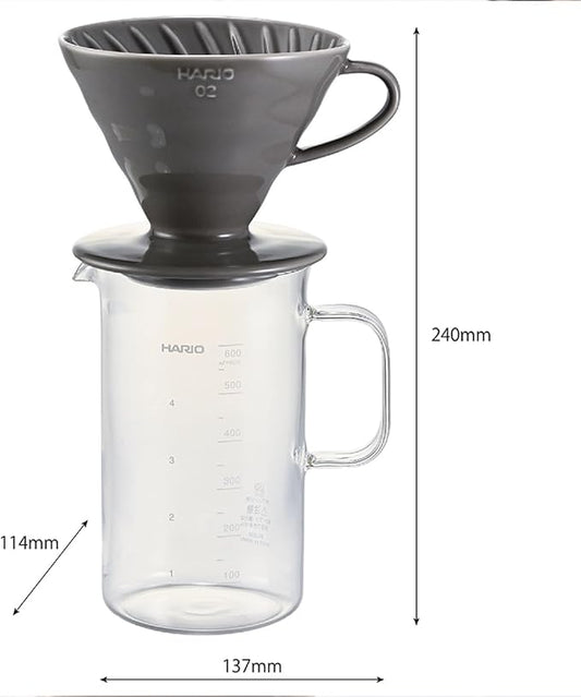 HARIO BVD-3012-GR Crafts Science Beaker Server & Coffee Dripper Set, Practical Capacity, 20.3 fl oz (600 ml), For 1 to 4 Cups, Made in Japan, Gray