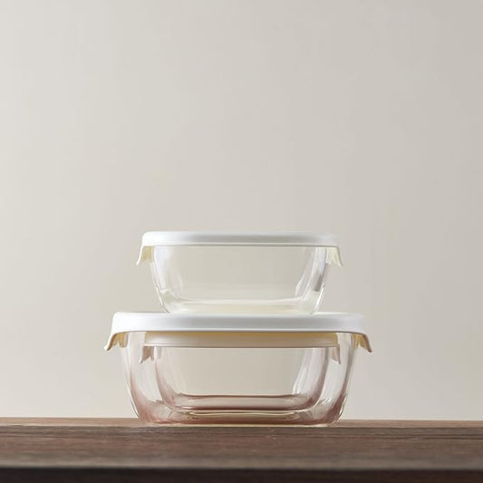 HARIO KSTL-3508-OW Stacking Heat-Resistant Glass Containers + Mini Square Small Bowls, Set of 5