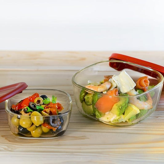 HARIO KST-2012-R Heat-Resistant Glass Storage Containers, Made in Japan, Red, 3 Pieces