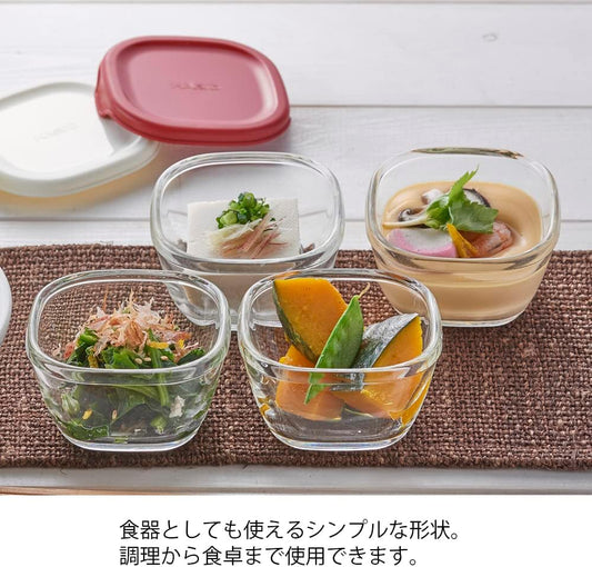 HARIO MKK-2012-R Heat Resistant Glass Storage Container, Red, 3.7 fl oz (110 ml), Made in Japan, Oven, Microwave, Dishwasher Safe, Tableware, Convenient Storage, Pack of 4