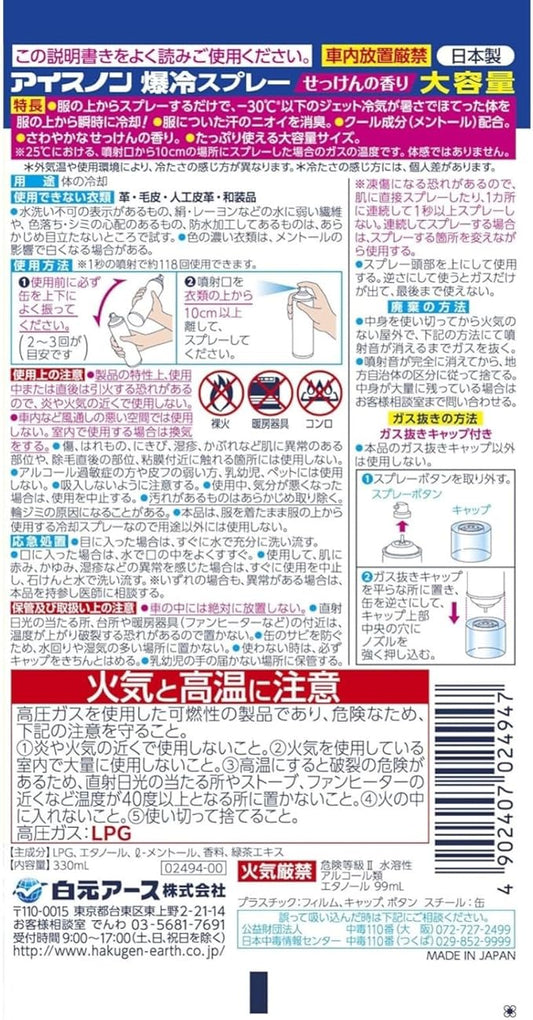 Ice-Non Burst Cooling Spray, Soap Scent, Large Capacity