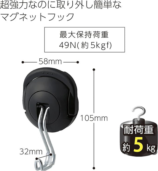 Kokuyo Toughpita Super Powerful Magnet Hook, black