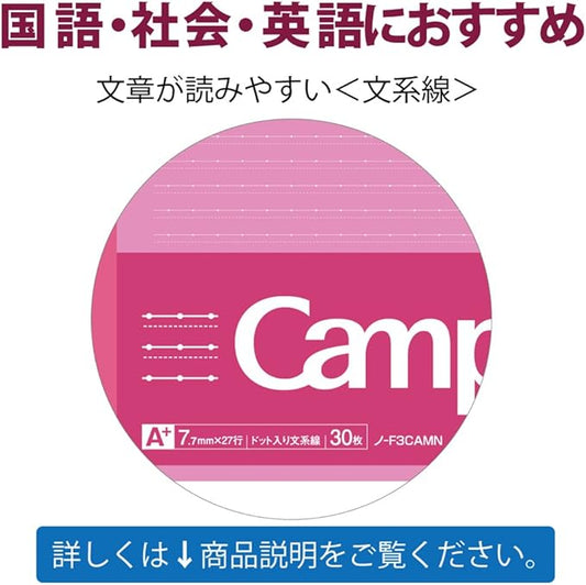 KOKUYO Store Campus Notebooks Semi B5-Dotted, 6Mm Ruled And 0.8Mm Sub-Ruled Memo-Adding Style, 30 Lines X 30 Sheets, Pack Of 5 Cover Colors