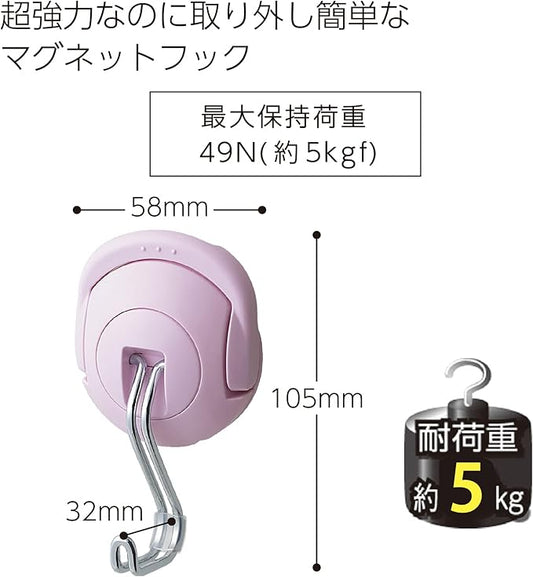 Kokuyo Toughpita Super Powerful Magnet Hook, safety pink