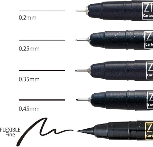 Kuretake ZIG CARTOONIST Mangaka, Black, Set of 5, Art, Illustration, Lettering, Graphic Designer, Urban Artist, Papercraft, AP Certified