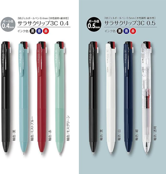 Zebra 3 Color Ballpoint Pen Sarasa Clip 3C 0.4mm Mist Blue J3JS5-MIBL