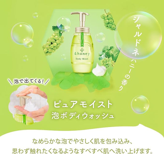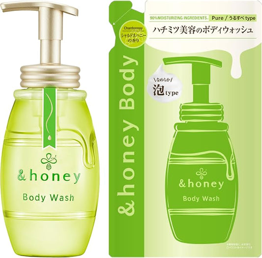 &honey Pure Moist Foam Body Wash, Chardonnay, 16.9 fl oz (500 ml) + Refill 15.3 fl oz (440 ml) | Body Soap
