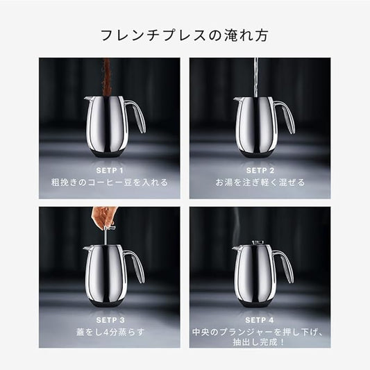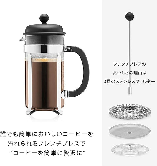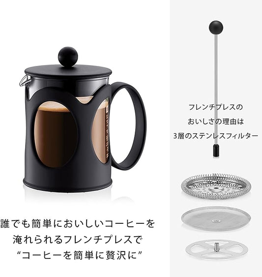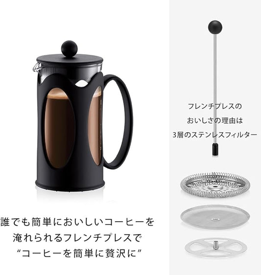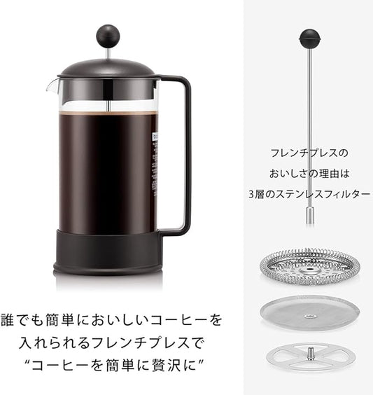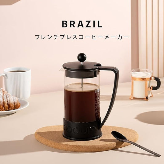 Bodum 1543-01 Brazilian French Press Coffee Maker, 11.8 fl oz (350 ml), Black Stainless Steel Filter, Glass Beaker, Soaking Type, Coffee