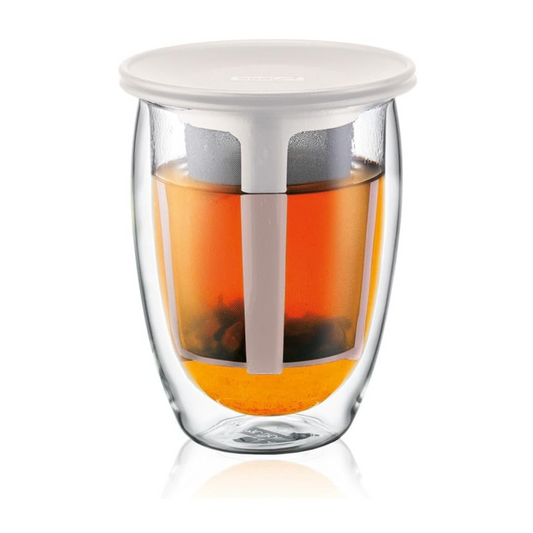 Bodum Teapot Tea Maker Tea for One Double Wall Glass with Tea Filter 350ml Black Tea Green Plastic Filter Glass Beaker Dishwasher Safe.