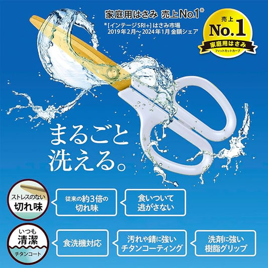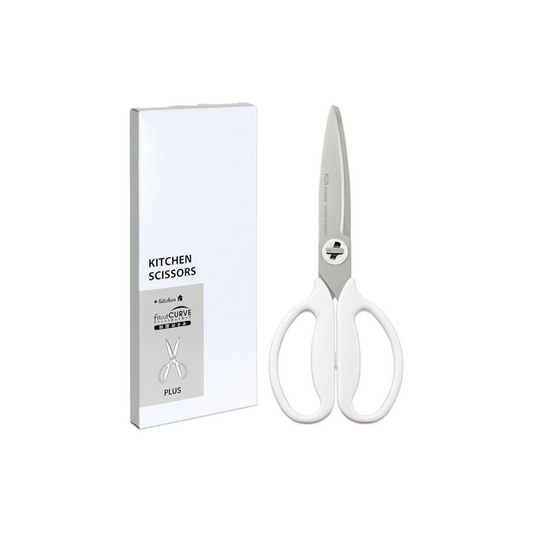 Plus Kitchen Scissors Disassemble Dishwasher Safe Stress-Free Cutting Fit Cut Curve Ivory White Paper Box Packaging 35731