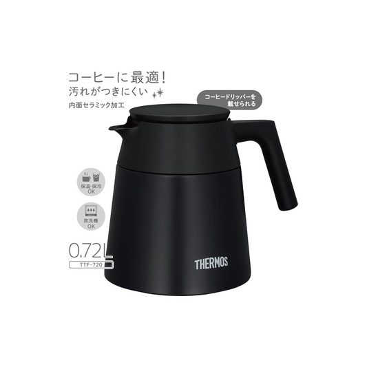 Thermos TTF-720 BK Vacuum Insulated Coffee Server, Black, All Parts Dishwasher Safe, Coffee Dripper Compatible, Magic Bottle Structure, Hot and Cold Retention