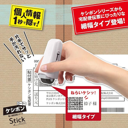 PLUS IS-550CM 39-151 + 39-188 Personal Information Protection Stamp Roller Keshipon Stick 1 x White + Dedicated Ink Cartridge
