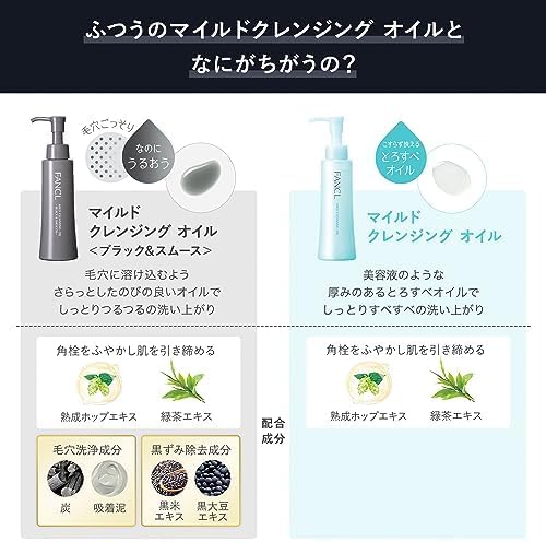 FANCL Mild Cleansing Oil (Black & Smooth) (Refill), 2 Bottles Additive-Free (Pore Care/Blackheads), Eyelash OK