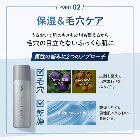 FANCL Men's All-in-One Water Men's All-in-One Lotion, Additive-Free (Moisturizing/Pores/CICA)