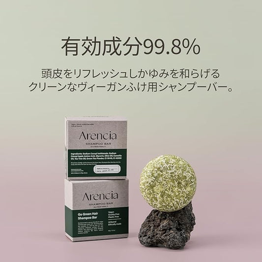 Arencia Solid Shampoo, Refreshing, Hypoallergenic, Non-Silicone, Weak Acid, Natural, Go Green Shampoo Bar