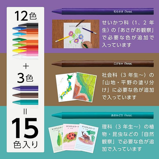 Pentel Crayon Colored Pencils Pastique GC1-15 15 Colors