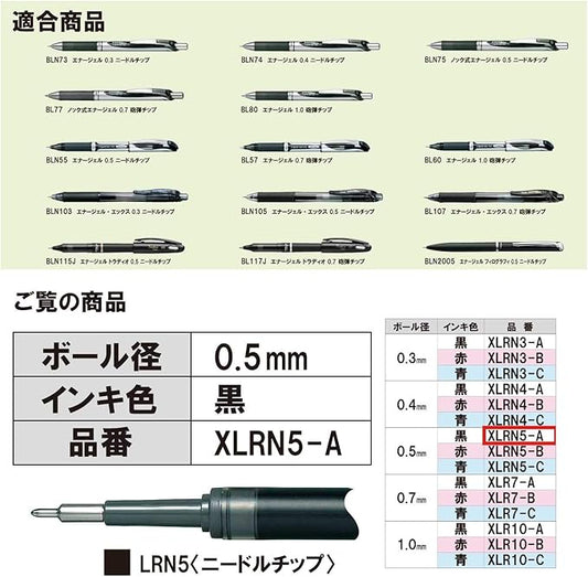 Pentel Gel Ink Ballpoint Pen Refill XLRN5-A 0.5mm Black