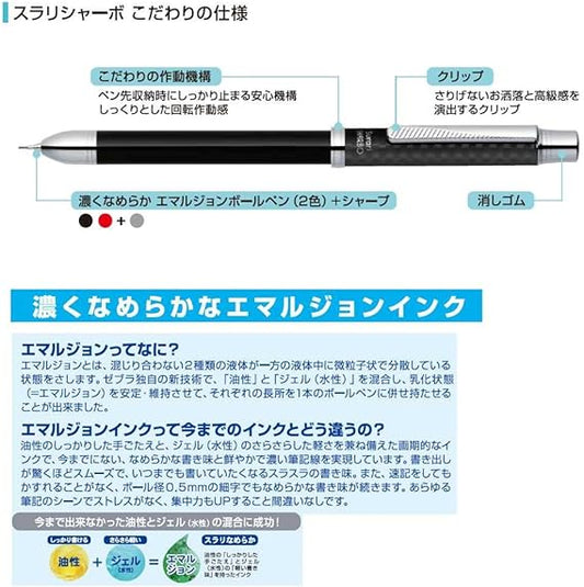 Zebra Surari Shabo 2000, 2 Color 0.7mm Emulsion Ink and 0.5mm Mechanical Pencil, Champagne Gold Body (SB27-CGO)
