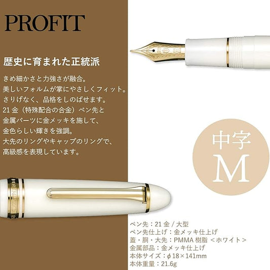 Sailor fountain pen profit 21 gold white Medium letter (M) 11-2021-410