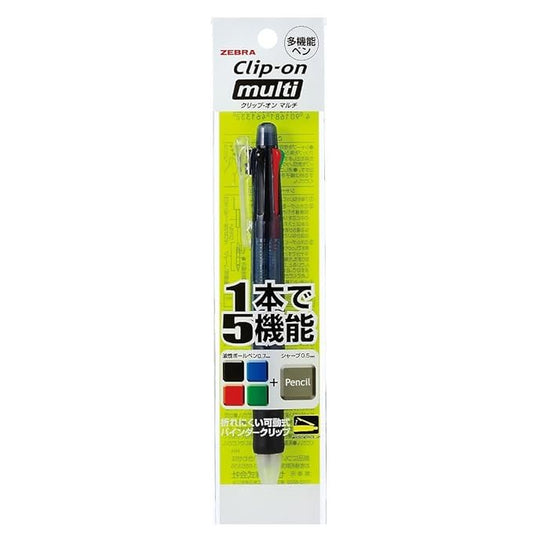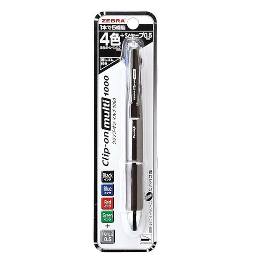 Zebra Clip-on multi 1000S Multifunctional Pen, 4 Color 0.7 mm Ballpoint and 0.5 mm Mechanical Pencil, Red Barrel (B4SA3-R)