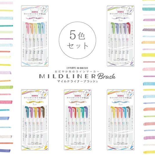 Zebra Mildliner WKT7-5C-N Highlighter, Slightly Fluorescent Colors, 5 Colors
