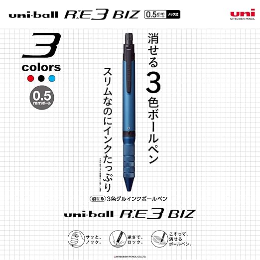 Uni Mechanical Pencil URE3100005.CG Erasable 3 Color Ballpoint Pen, Uni-Ball RE3 BIZ 0.5 Limited Color Gray ( Blue/Limited Color)