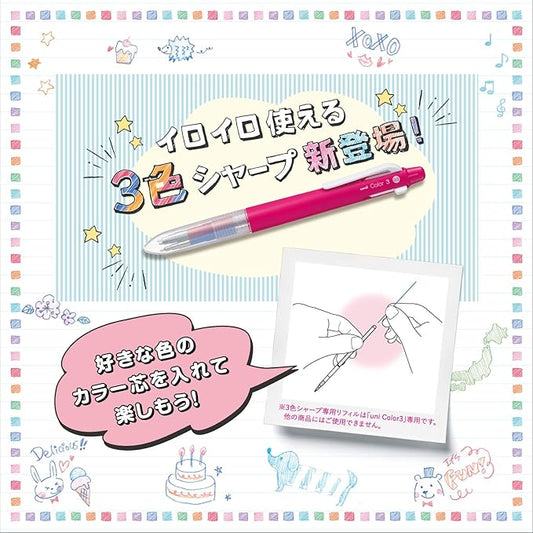 Uni Mechanicali Pencil ME3502C05.13 Erasable Color Lead, 0.5, Uni-Color 3, Cherry Pink