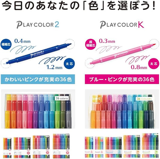 TOMBOW GCF-012 Water Based Sign Pen, 24 Colors (Thick & Extra Fine Twin Type), Color Pen (Full of Kawaii Colors), Play Color K