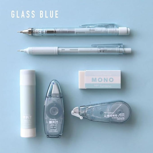 Tombow PCC-644AAZ MONO x PiT Stationery Set, Pastel Glass, Blue, 6-Piece Set (Mechanical Pencil 0.5mm x 2, Eraser, Glue Stick, Correction Tape, Tape Glue)