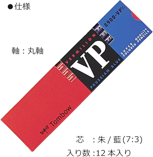 TOMBOW Pencil Red and Blue Round Shaft Vermilion 1 Dozen 8900-VP7/3