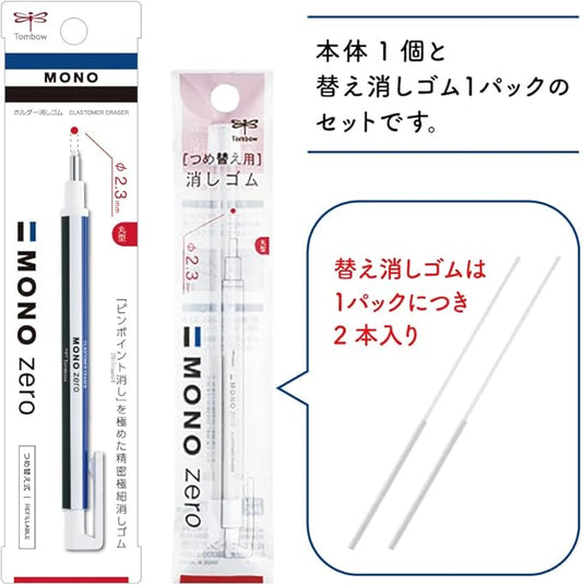 Tombow JCB-232AZ MONO Zero Pen-Shaped Round Eraser with Refill for Eraser
