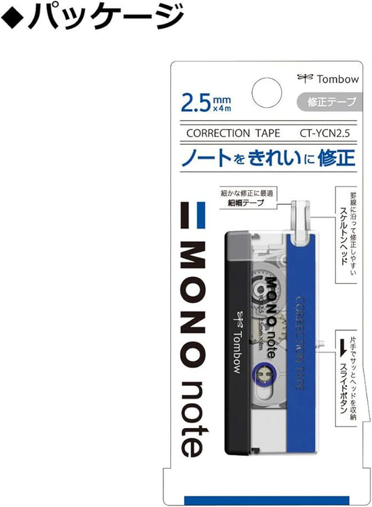 Tombow Pencil Correction Tape 2.5mm MONO Mono Note (Extra Fine 2.5mm Width) Disposable Type 4m 1 Piece CT-YCN2.5