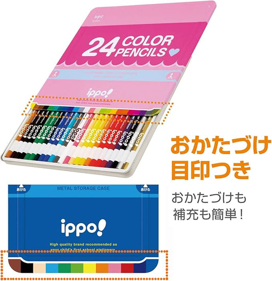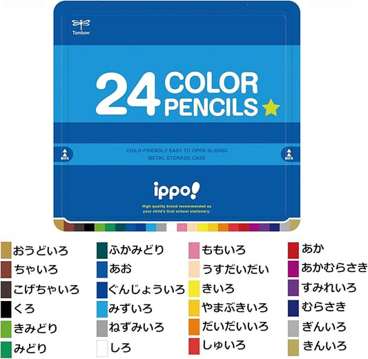 Tombow Colored Pencils, 24 Colors, Elementary School Students, Ippo (Sliding Can), Plain, Blue, CL-RPM0424C