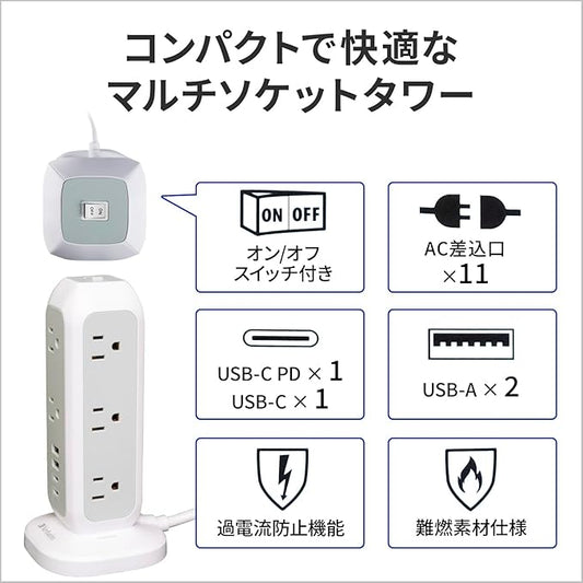 Verbatim Compact Tower Power Strip 11 Type A with 2 x USB-C 2 x USB-A 32250
