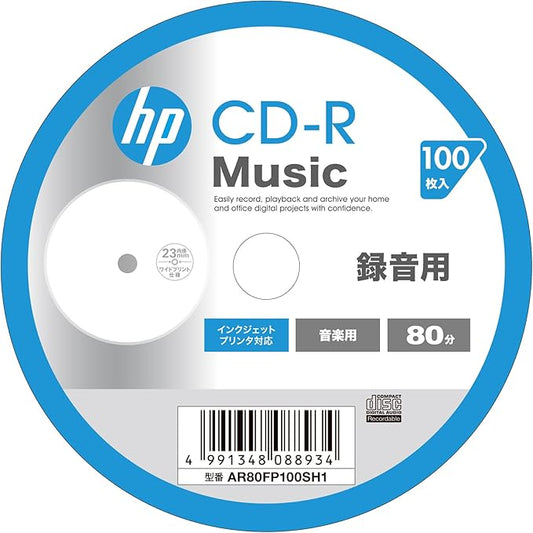 Hewlett Packard AR80FP100SH1 Single Record Music, CD-R, 80 Minutes, 100 Sheets, Inkjet Printer Compatible, White, 48x